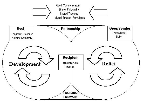 The Relief Cycle as shown in the diagram shows the role of the outsider as one who may periodically come in to provide skills and resources and then leave. The Development Cycle as shown in the diagram shows the role of the Host, living in the community and continuing in the tending process of long-term ministry.